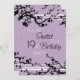19th birthday party invitation card in elegant purple and black floral pattern, delicate and stylish with flowering tree design. Customisable with your party details.