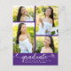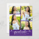 Purple 4 Photo Graduation Modern Script Hearts Invitation Postcard