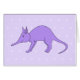 A cartoon illustration graphic of a purple aardvark. On lilac polka dot background.