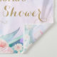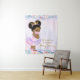 Purple and pink baby shower backdrop with cute African American baby girl with cute afro hair wearing a pink and purple tutu and mask on a pretty pink and purple floral background. You can move the baby as needed, and you can add and remove text as needed.