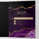 Purple and Gold Agate Geode Wedding Photo Tri-Fold Invitation. A great way to communicate all of your wedding information to your guests in one card. Easy to customise text templates, plus photo template to put the spotlight on the happy couple!