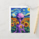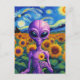 Purple Alien Holds Flower Van Gogh Sunflower Field Postcard
