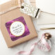 Party thank you stickers with an elegant abstract design. Dark purple amethyst colour with ribbons of gold nestled between layered strata. Rich and beautiful design. Layered over top is a white circle frame with a faux gold foil border, with your personalised text inside.