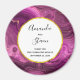 A wedding thank you magnet with an elegant abstract design. Dark purple amethyst colour with ribbons of gold nestled between layered strata. Rich and beautiful design. Layered over top is a white circle frame with a faux gold foil border, with your personalised text inside.
