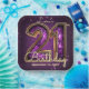Purple Amethyst Crystal Gold 21st Birthday Paper Plate