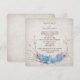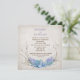 aqua and purple floral bouquet on soft sepia textured background for wedding invite