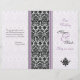 The text on this lavender purple and black damask wedding program is fully customisable. It is intended to be folded down the middle. To change the text, use the personalise option. For more extensive changes, such as changes to the font, font colour, font size, or text layout, use the customise it option. Once your text is finalised, if you need to move it around a bit, you can do that using the customise it option. This damask special occasion program is currently customised as a wedding program, but it would work well as a program for other special occasions as well. Really, this would even make a really nice church bulletin with changes to the text. Let your imagination lead you.