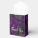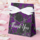Our black and purple floral rose gothic wedding favour boxes are made to match out Gothic Purple & Black Rose Wedding Collection. Dark black and deep purple contrast with an abundance of dark floral motifs. Script font paired with serif font, lends to an artistic look that matches well with gothic style.
