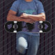 The tree design on this skateboard deck is in black and purple and there are customisable initials. The picture is of a Hawthorn, from Glastonbury, England. A nature themed skateboard design.