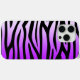 A cool purple and black zebra print pattern is featured on this iphone case.