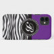Purple and Black Zebra Print Monogram B iPhone Case: Use this adorable and trendy iPhone case to protect your phone in a fashionable way. Use the prompt to change the monogram. If you wish to change the graphic, please contact me through my store and I will help. AntiqueChandelier© http://www.antiquechandelier.ca