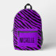 Purple and Black Zebra Stripes Personalised Printed Backpack