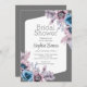 Purple and Blue Flowers Grey Bridal Shower Invitation