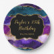 Purple and Blue Peacock Agate Birthday Paper Plate