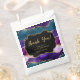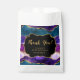 This elegant and glamourous birthday thank you favour bag features a purple and teal blue agate marble background with faux gold glitter accents. The text combines handwritten script and modern sans serif fonts for a classy and sophisticated look. The sequins and distressed texture creates the perfect blend of chic and grunge.