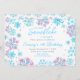 This elegant and glamourous invitation features watercolor purple and turquoise blue faux glitter snowflakes and sparkles on a white background. It is perfect for a winter or Christmas themed birthday party.