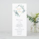 A beautiful watercolor floral wedding program featuring purple and blue florals.