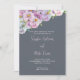 The intricate floral pattern on the top of the invitation creates a romantic and elegant atmosphere, making it the perfect choice for a garden wedding. The white font used on the invitation provides a crisp and clean contrast against the dark grey background, allowing the floral design to truly shine.