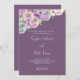The intricate floral pattern on the top of the invitation creates a romantic and enchanting atmosphere, making it the perfect choice for a garden wedding. The white font used on the invitation provides a clean and classic contrast against the dark purple background, allowing the floral design to truly pop.