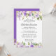 Very pretty combination of dark purple roses, light purple roses and ivory white flowers. They are all are tucked into a variety of green leaves. Together they create floral borders along the top and bottom of this bridal shower invitation. The bride's name is written in a large script font. The back of the invitation is royal purple with the tiniest white dots. The floral border also continues along the bottom.