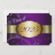 Purple and gold graduation party invitation with light and dark purple floral and a golden ribbon going across showing the year of graduation. The back of the card is purple with light gold font for people to fill in the graduation party announcements.