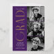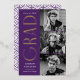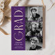 Stylish graduation announcement featuring the graduate's three photos located to the right of the design in a vertical layout. "Grad" is displayed in real gold foil art deco lettering with a purple background. Personalize the modern photo graduation announcement by adding the graduate's name, graduation year, and school name. The design reverses to display a purple and white geometric swirl background. Perfect for both high school and college graduations!