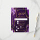 Make a bold and elegant first impression with this purple and gold agate marble RSVP card, featuring rich jewel tones, organic stone textures, and shimmering gold accents perfect for fall and winter celebrations. This design includes customizable text boxes and meal selection checkboxes, allowing your guests to indicate their preferences. The default options are beef, chicken, or vegetarian, but these can be easily changed to suit your event. The deep amethyst hues paired with metallic gold detailing create a dramatic yet refined look ideal for a wedding RSVP, birthday RSVP, or Sweet Sixteen RSVP with a formal, modern, or glamorous aesthetic. Inspired by natural agate and geode patterns, this luxurious design coordinates beautifully with upscale seasonal events and is fully editable to match your details, adding timeless sophistication to autumn and winter celebrations alike.