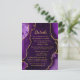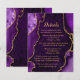 Celebrate every detail of your wedding with this purple and gold agate marble details card. Rich amethyst hues, organic stone textures, and shimmering gold accents combine to create a sophisticated, jewel-toned design that complements a modern, elegant, or glamorous celebration. The striking contrast of deep purple and metallic gold provides a polished backdrop for sharing both reception and lodging information, keeping your guests informed in style. Fully customizable with your event schedule, hotel details, and special notes, this agate-inspired card adds a cohesive and refined touch to your wedding stationery suite, perfect for fall or winter weddings.