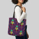 Purple and Gold Art Deco Floral Ornament Tote Bag
