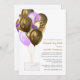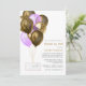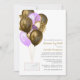Glitzy long distance baby or bridal shower by mail invitation featuring purple and gold glitter and confetti balloons.