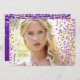 Elegant purple and gold confetti graduation announcements. This beautiful string lights and confetti purple and gold graduation announcement is easily customised with your photo. You can choose the font style and colour of your choice, and move the Class of 2015 and confetti wherever you need on your photo.