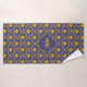 A set of towels with a seamless repeating purple and gold quatrefoil pattern with fleur de lys symbol (lilies). With a customizable text field for your initials.