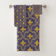 Purple and gold fleur-de-lys quatrefoil pattern bath towel set