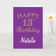 Purple and Gold Glitter 13th Birthday Card with personalized name. For further customization, please click the "Customize it" button and use our design tool to modify this template.