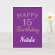 Purple and Gold Glitter 15th Birthday Card