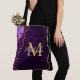 This bag features an elegant and glamourous agate marble background with geode gemstone detailing and faux gold glitter accents. The monogram combines handwritten script and modern sans serif fonts for a classy and sophisticated look. This will make the ideal gift as it can be customised with a name and initial. The deep purple hues make it perfect for autumn fall and winter.