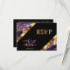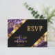 Wedding RSVP Card. Featuring a modern wedding styled rsvp in a purple and gold Marble. ⭐This Product is 100% Customisable. Graphics and / or text can be added, deleted, moved, resized, changed around, rotated, etc... 99% of my designs in my store are done in layers. This makes it easy for you to resize and move the graphics and text around so that it will fit each product perfectly. 📌 (Please be sure to resize, change, add, delete or move any graphics or text if needed before ordering) You can also "TRANSFER DESIGN" on other Zazzle products and adjust the design to fit most of Zazzle items. (click on the transfer area below) Some of the text graphics have ready to fill in the box(es) or you can Click on the "CUSTOMIZE" button to add, move, delete, resize, background colour or change any of the font or graphics. The design is made with high resolution vector and/or digital graphics for a professional print. 📌NOTE: (THIS IS A PRINT. All Zazzle product designs are "prints" unless otherwise stated under "About This Product" area) The design will be printed EXACTLY like you see it on the screen and on the product...so please make sure when you do your changes on the resizing of any of the graphics or text that it fits in the areas correctly and that your spelling and wording is how you like it to be in size, colour and font. If you have any questions about the "DESIGN ONLY" or need help please contact me through my store link: https://www.zazzle.com/store/LetsUDesignIt (Copy and Paste) I'll be happy to help. ⭐ ALL OTHER QUESTIONS SUCH AS (shipping, refund, the printing being incorrect, the product itself, etc...) please contact Zazzle or the Maker ⭐DIRECTLY⭐. Thank you for the support and stopping by my store - LetsUDesignIt. ⭐⭐⭐ ZAZZLE promises 100% satisfaction.