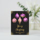 Send warm holiday wishes with this sophisticated Christmas postcard featuring five elegant ornaments in purple and gold tones. Each ornament showcases a unique design - floral, snowflake, dripping faux glitter, diamond pattern, and stars - against a rich black background with golden sparkles. The luxurious palette and refined layout make this card ideal for stylish families, formal greetings, or corporate holiday messages. Perfect for those who love modern elegance with a festive twist.