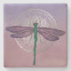 Hand-painted green dragonfly with purple wings, and a silver mandala embellishment against a purple-pink watercolor background