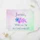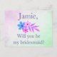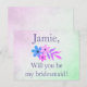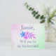 A lovely parchment design, this purple and green floral bridesmaid invitation is the perfect way to ask that loved one to be your bridesmaid. Her name and "Will you be my bridesmaid?" is written in lovely purple text. Place your order today!