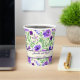 Wedding paper cups featuring an elegant watercolor purple and green floral design.