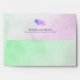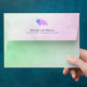 Purple and green gradient parchment floral design showcases a purple and green parchment colour on the envelope with a blue and purple flower on the inside flap as well as the back flap. Address information can also be written on the back flap, purchase yours today!