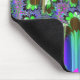 This unique image is a green, pink, brown, blue, and purple fractal, with organic-looking fronds. A fractal is a repeating pattern of a mathematical formula, but can resemble many organic shapes in nature.
