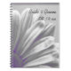 Create a unique advice book or guest book when you personalise the pretty Purple and Grey Floral Highlights Wedding Spiral Notebook with the names of the bride and groom and their marriage ceremony date. This elegant customised botanical nuptial note book features a digitally enhanced black and white floral photograph of a gerber daisy flower blossom with purple highlights and a silver grey background.