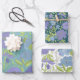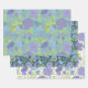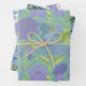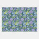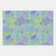 Add a unique touch to your gifts with this elegant gift wrap featuring big purple flowers surrounded by lime leaves with 3 different background colours of aqua, emerald and white.