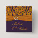 This dark purple and orange damask with faux ribbon and jewels Mother of the Bride button matches the wedding invitation show below. The text is customisable and so is the shape and size of the button. If you need anything changed, please email niteowlstudio@gmail.com.