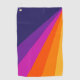 Abstract illustration of diagonal retro style stripes in purple, blue, orange and yellow colours on dark blue background