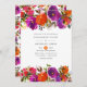 Purple and orange watercolor roses and peonies wedding invitation customisable to your specifics.