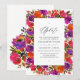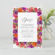 Purple and orange watercolor roses and peonies postponed wedding invitation with elegant handwriting typography.