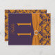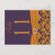This dark purple and orange damask table number postcard with matching faux ribbon and jewels matches the wedding invitation shown below. You must change the number 11's to each number that you need, add it to your cart, and then come back and repeat the process with each number that you need. Quantity discounts may apply once you add all the items to your cart. If you have any questions, contact me at niteowlstudio@gmail.com.